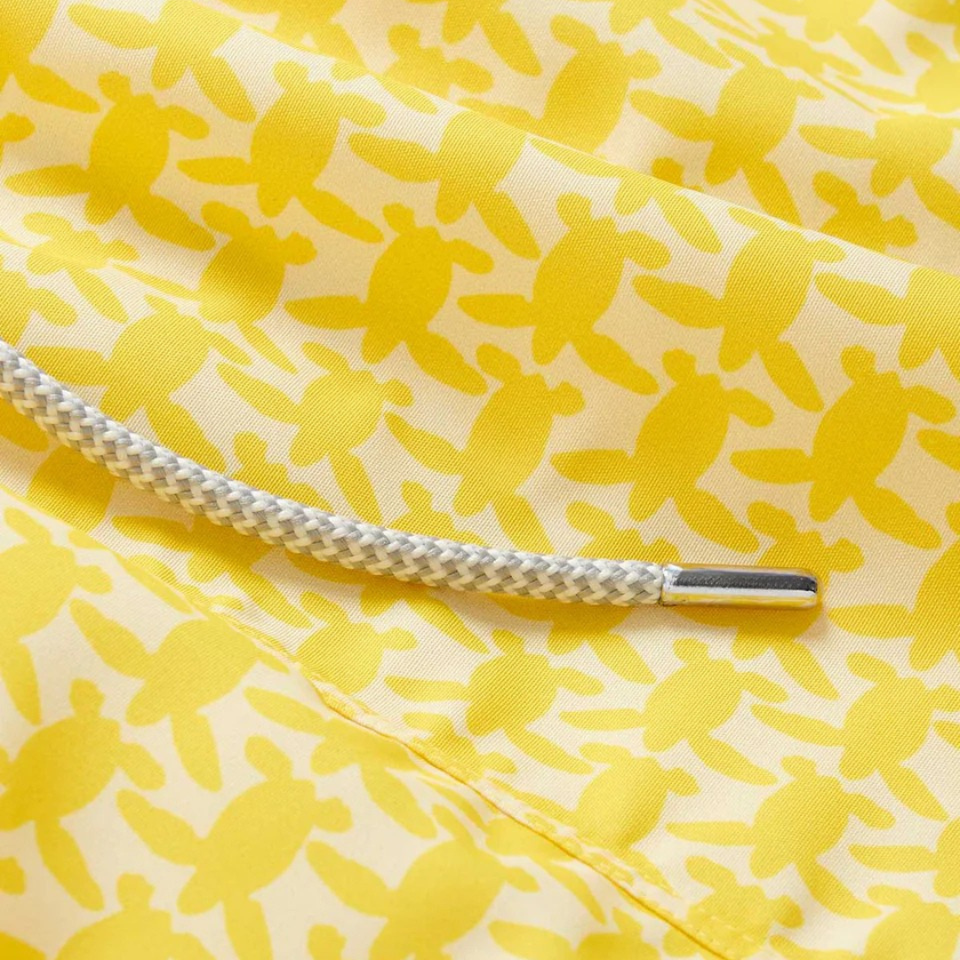 Men Recycled Swim Shorts Yellow Turtle Pattern Quick Dry Beach Swim Trunks with Elastic Waist Drawstring Pockets
