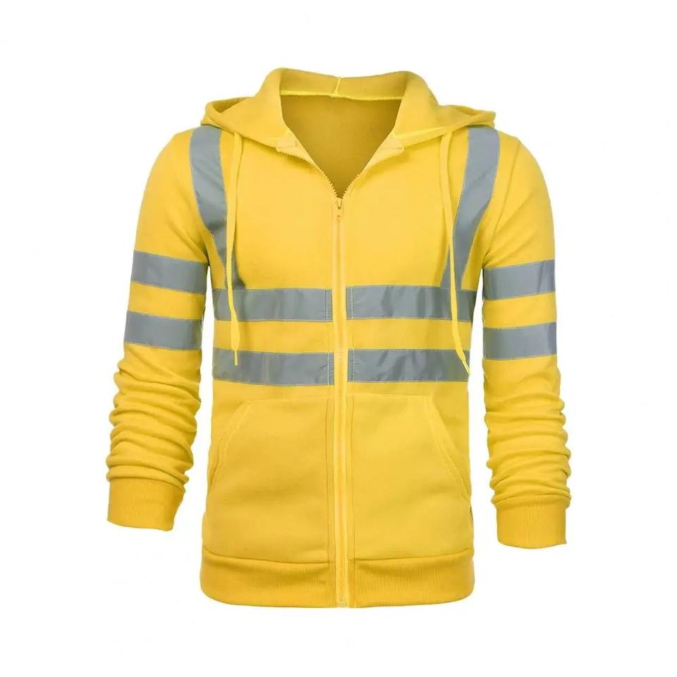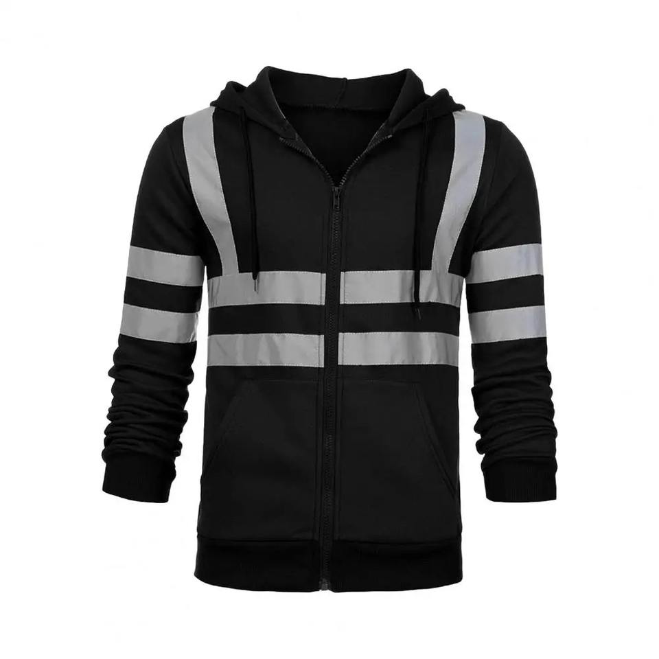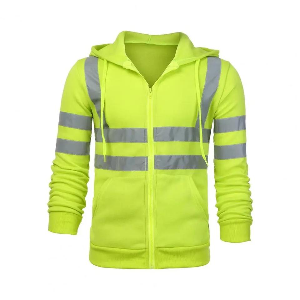 Men Reflective Safety Hoodie Zipper Sweatshirt High Visibility Construction Workers Work Clothes Sweatshirt Night Running Hoodie