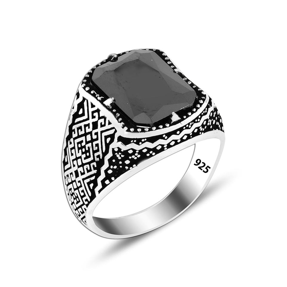 Men Ring 925 Silver Jewelry Wholesale Silver Ring for Men Black Zircon Art Design Luxury Trendy Vintage Fine Man Jewelry Rings