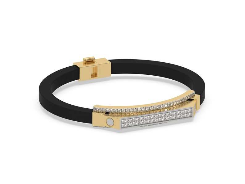 Men Rubber Bracelet With Zircon 925 Sterling Silver And 14K Gold Plated Custom Designer Jewelry Perfect Gift For Boyfriend