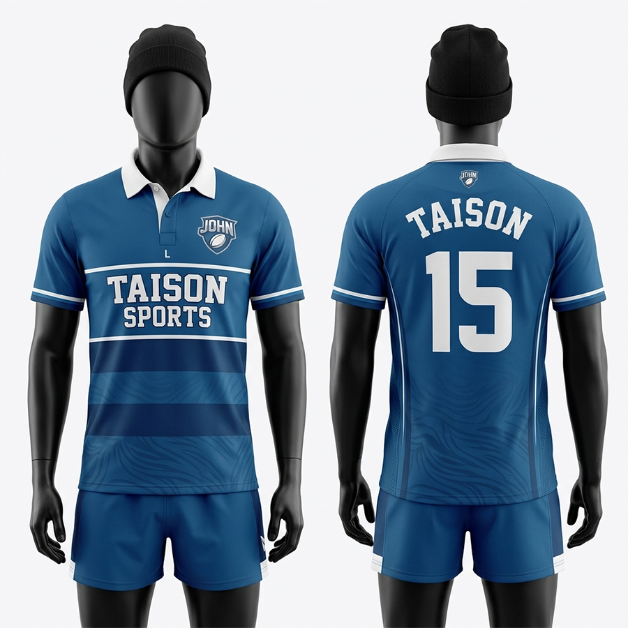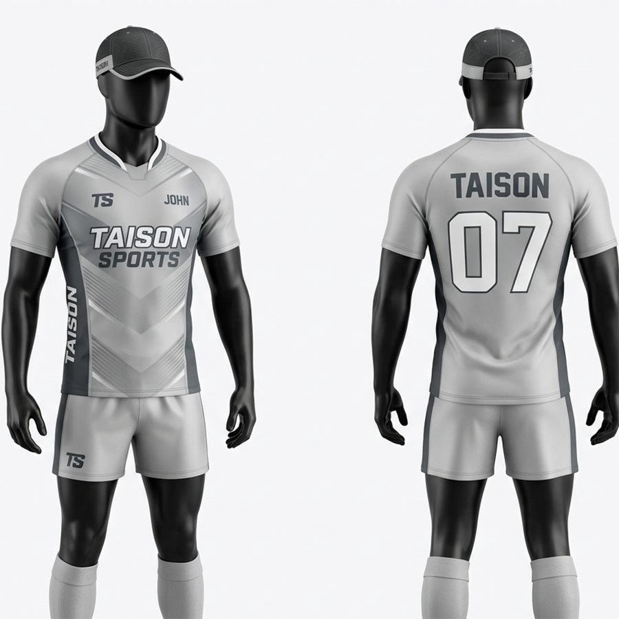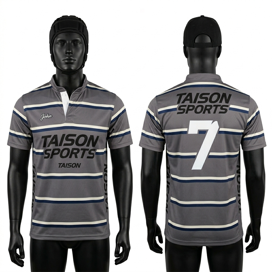 Men Rugby Jersey Premium Polyester Interlock Breathable Light Grey Dark Grey Chevron Panel Design Print Custom Logo Name Number