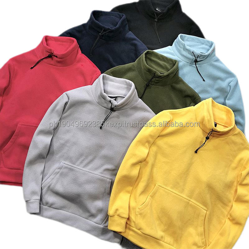 Men'S Warm Fleece Sweater Men'S Buckle Half High Collar Outdoor Pullover Sweater Standing Collar Sweatshirt