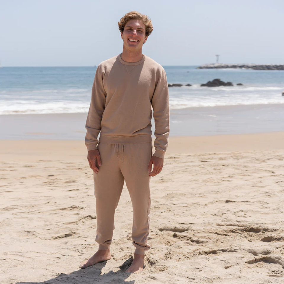 Men Sand French Terry Joggers 100% Luxury Organic Cotton Pre Shrunk GOTS Certified Premium Comfortable Tapered Fit Sweatpants