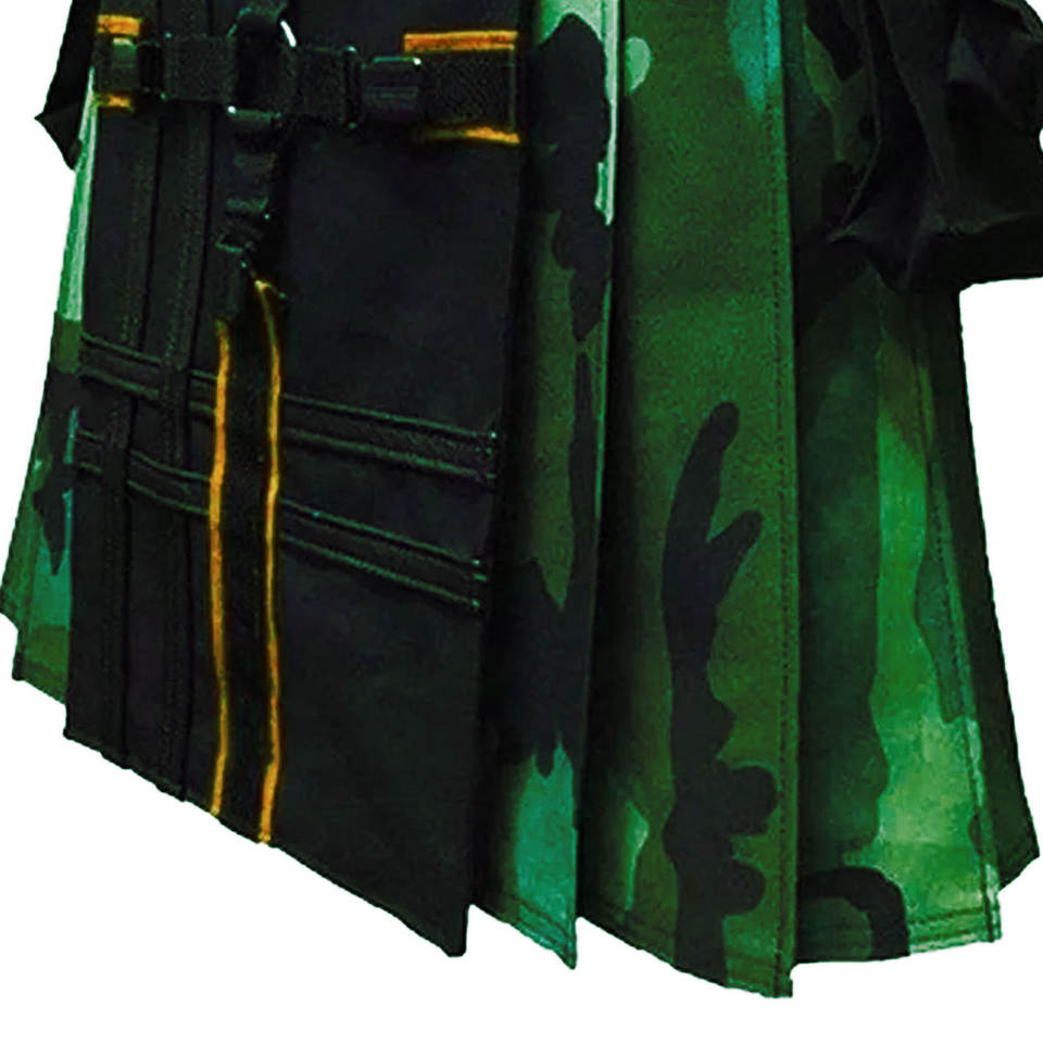 Men Scottish Handmade Gothic Green Camo Utility Kilt Tactical Hybrid Style with Functional Pockets