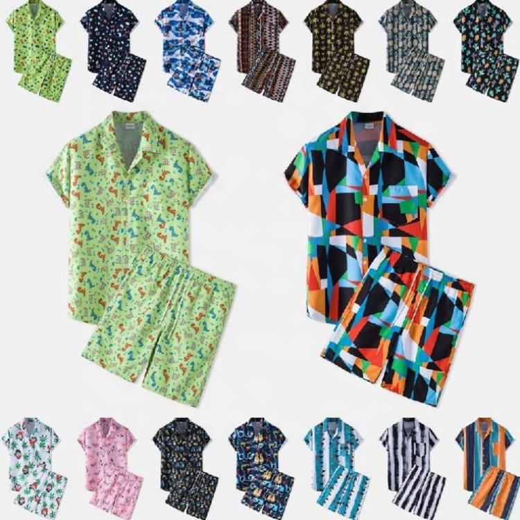 Men Sets Streetwear Striped Printing Beach Short Sleeve Lapel Shirt Board Shorts For Men Vacation Short Set