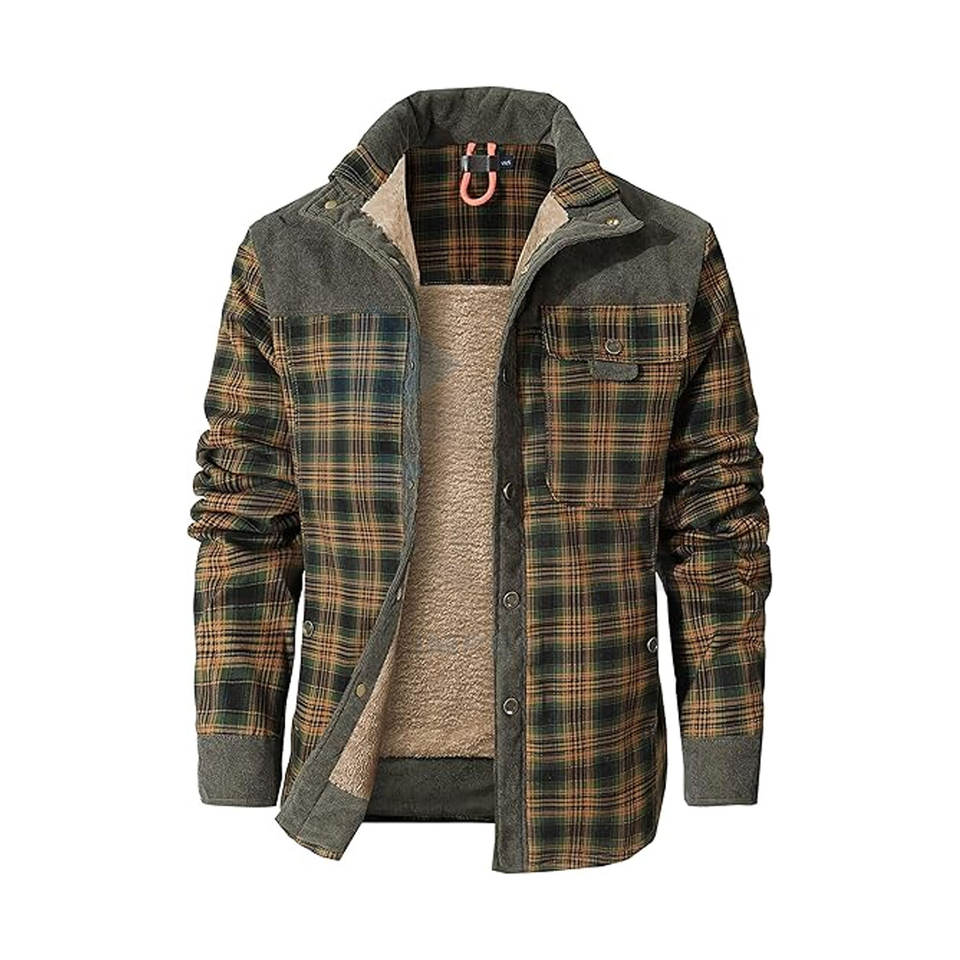 Men Sherpa Lined Plaid Flannel Shirt Jacket Snap Button Warm Winter Jacket with Soft Fleece Lining Cozy Insulated Outdoor