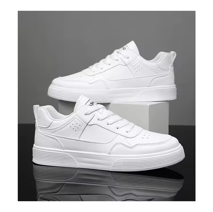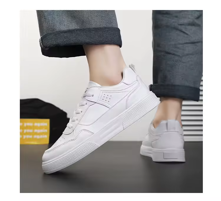 Men Shoes New Breathable Leather White Shoes Student Trend Versatile Height-increasing Sports and Casual Skateboarding Shoes