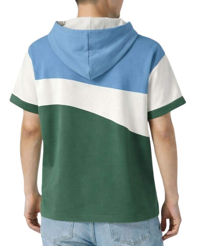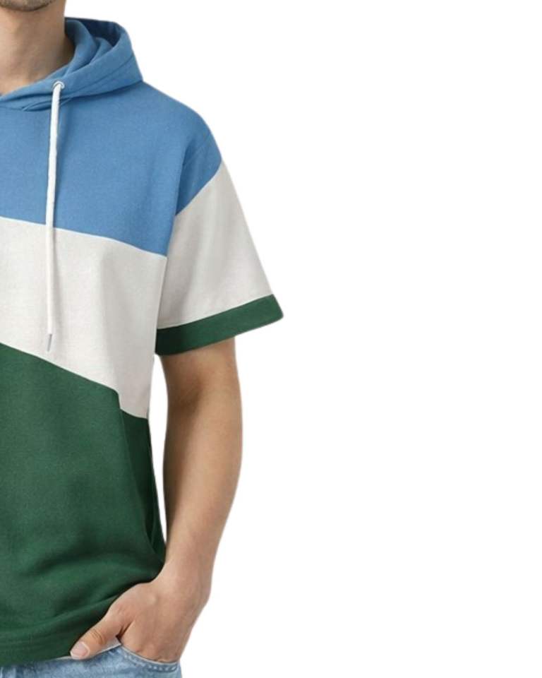Men Short Sleeve Hoodie T Shirt Blue White Green Color Block Casual Pullover Hooded Top Soft Cotton Blend Summer Wear Fashion