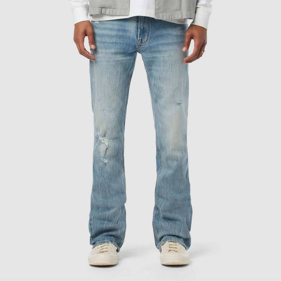 Men Sky Blue Kick Flare Jeans - Unique 70s-Inspired Flared Jeans with High Waist, Perfect for Stylish Casual