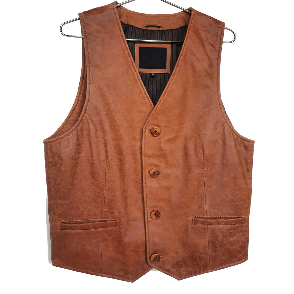 Keywords:Men Sheep Skin Leather Button Vest