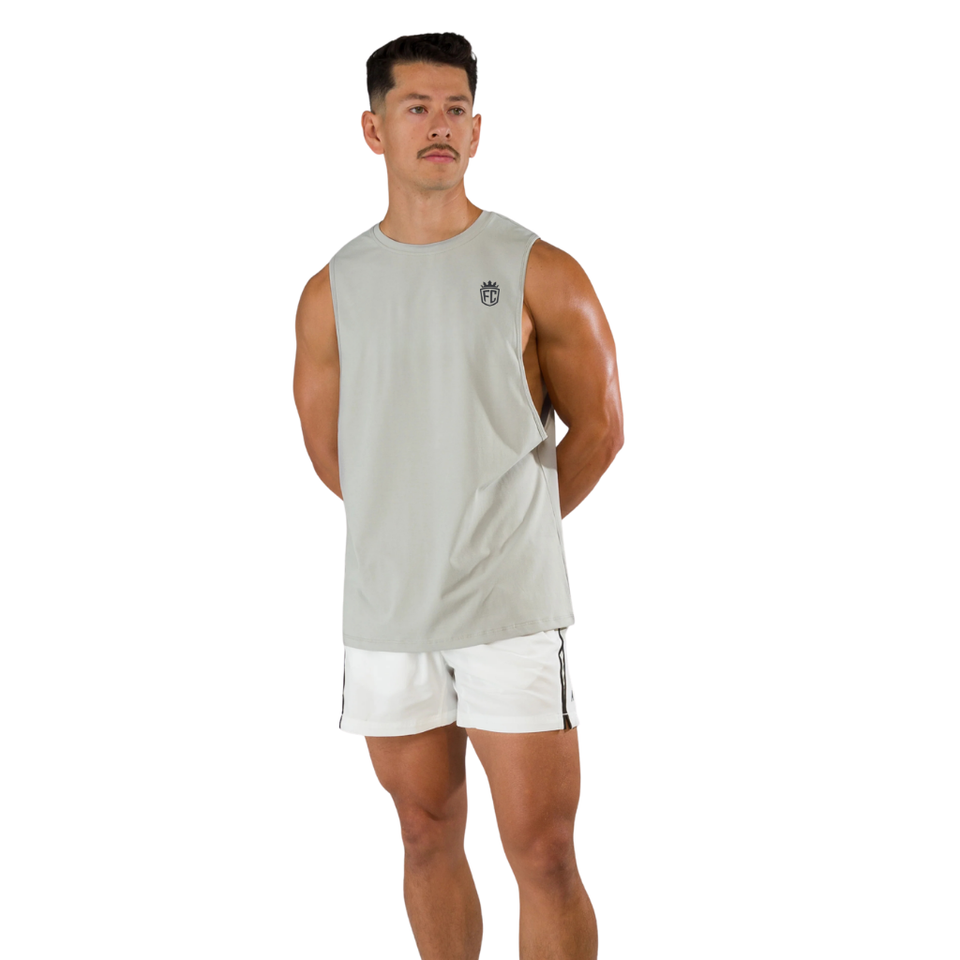 Men Sleeveless Cut Off Tank Top Muscle Fit Gym Workout Shirt Training Vest Lightweight Athletic Sportswear Silver