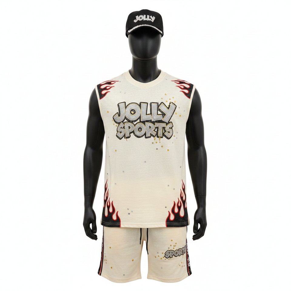 Men Sleeveless T Shirt Short Set 180 GSM Breathable Polyester Flame Panel Heat Transfer Logo Men Sleeveless shirt and Shorts Set