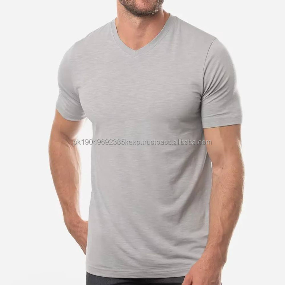 Men Slim Fit Casual V-Neck T-Shirt Wholesale New Summer Fashion Men's High Quality Quick Dry100% Cotton Men's T-shirts