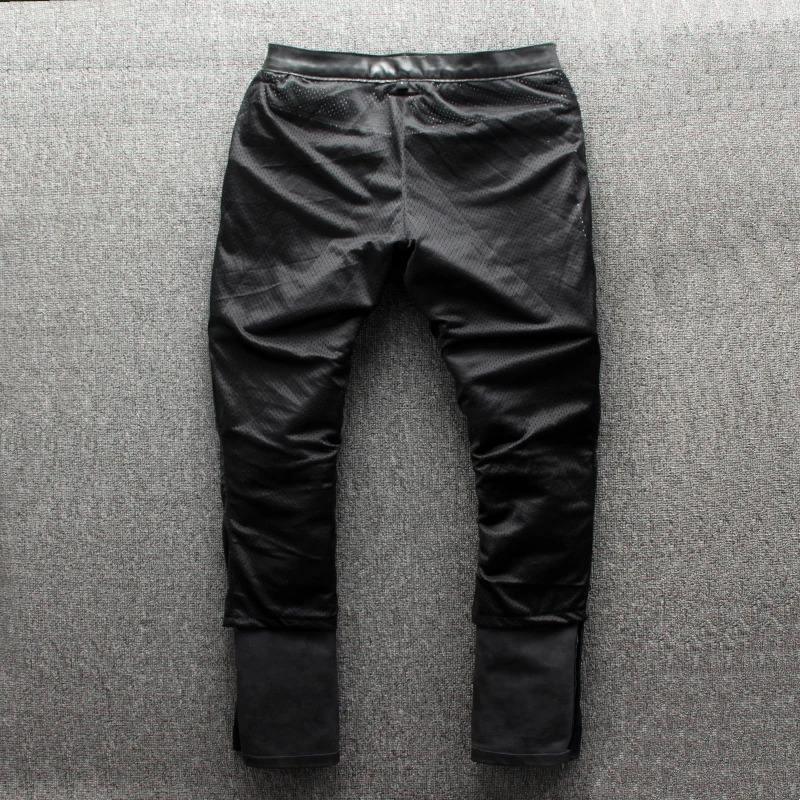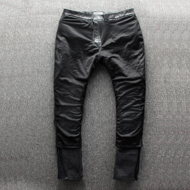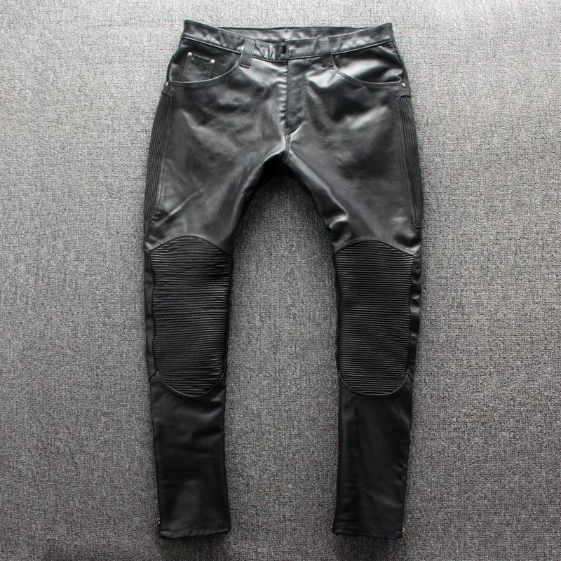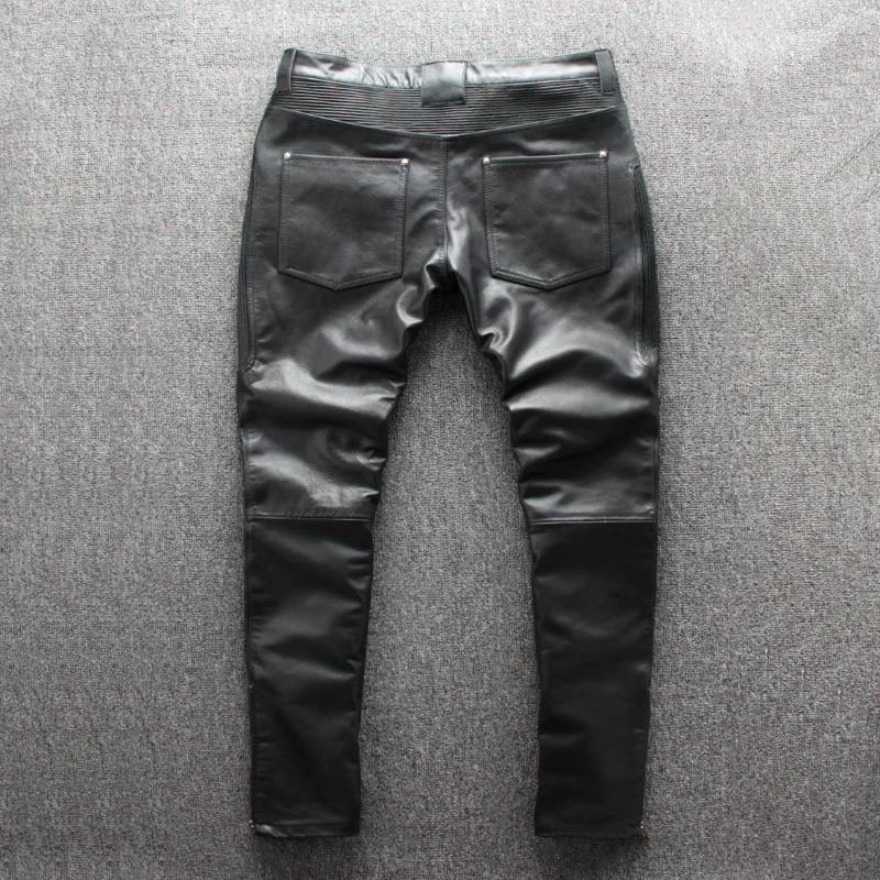 Men's Slim Motorcycle Real Cowhide Leather Pants Windproof Black Zipper Street Punk Style Mid Waist Plus Size 4XL 100% Canvas