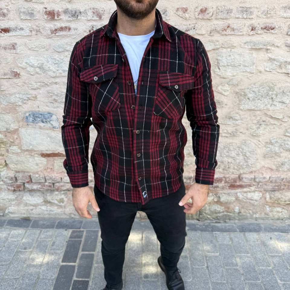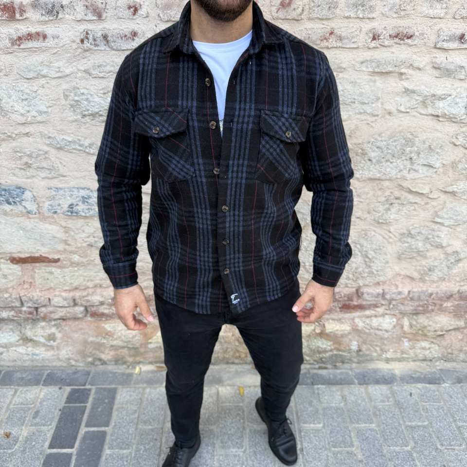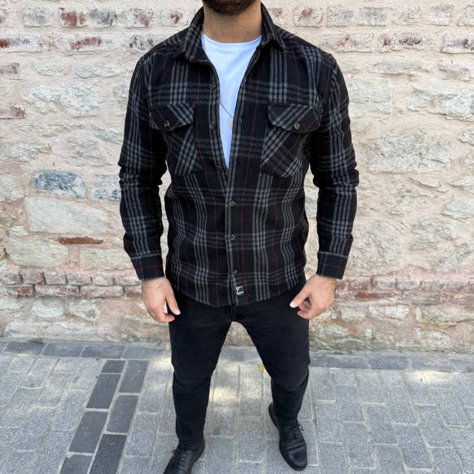 Men Smart Casual Overshirt Satin Long Sleeve Double Breasted Button Plaid Shacket Shirt Streetwear Outerwear Fashion Top Pockets