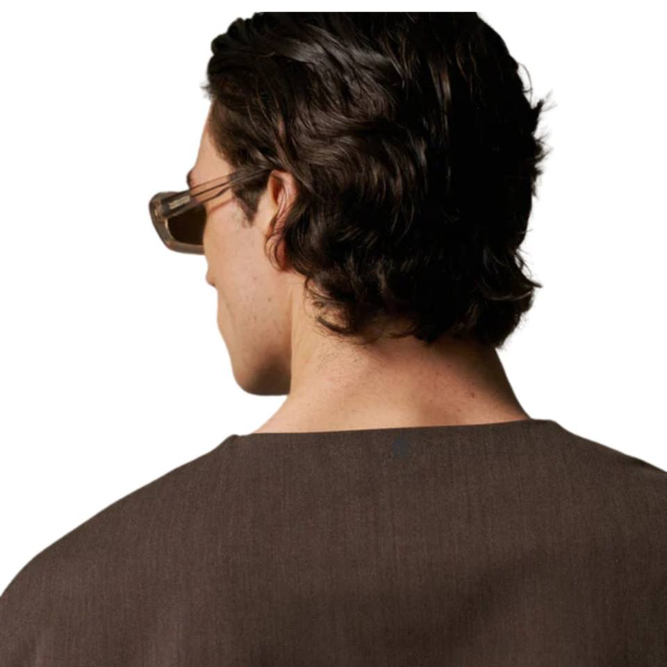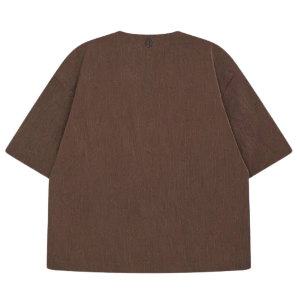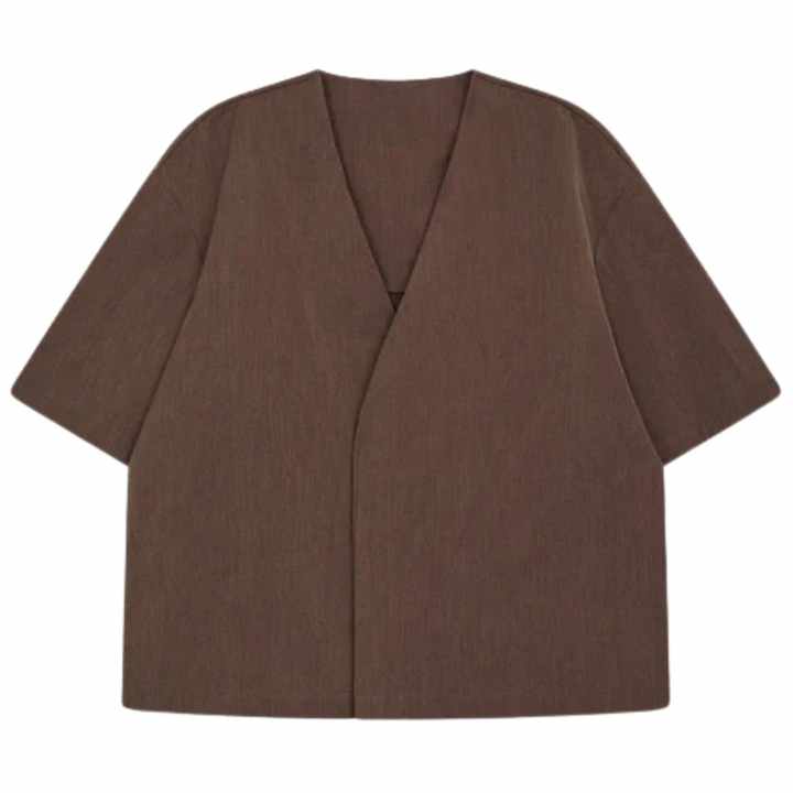 Men Smart Woven Shirt Short Sleeve V Neck Minimalist Casual Solid Brown Color OEM Custom Wholesale Bulk Production Supply