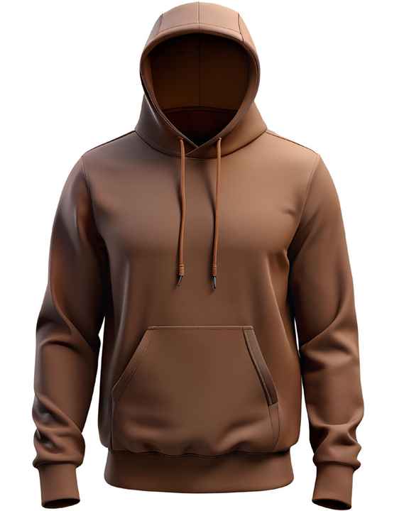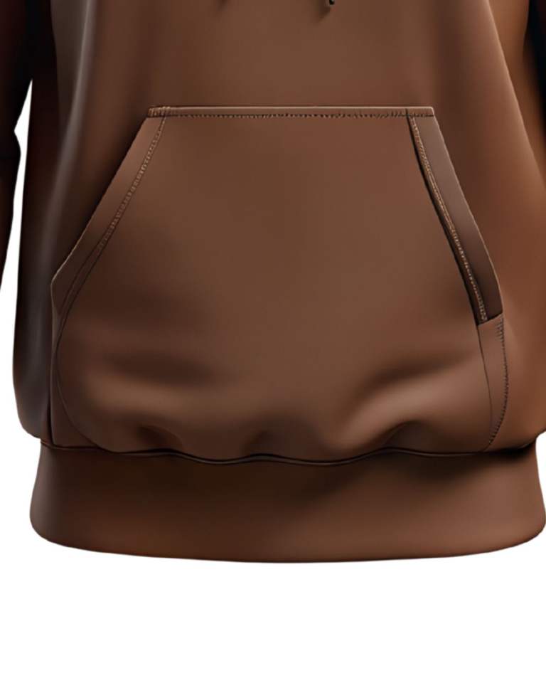 Men Solid Brown Pullover Hoodie with Kangaroo Pocket Adjustable Hood Cords Soft Fleece Fabric Casual Streetwear