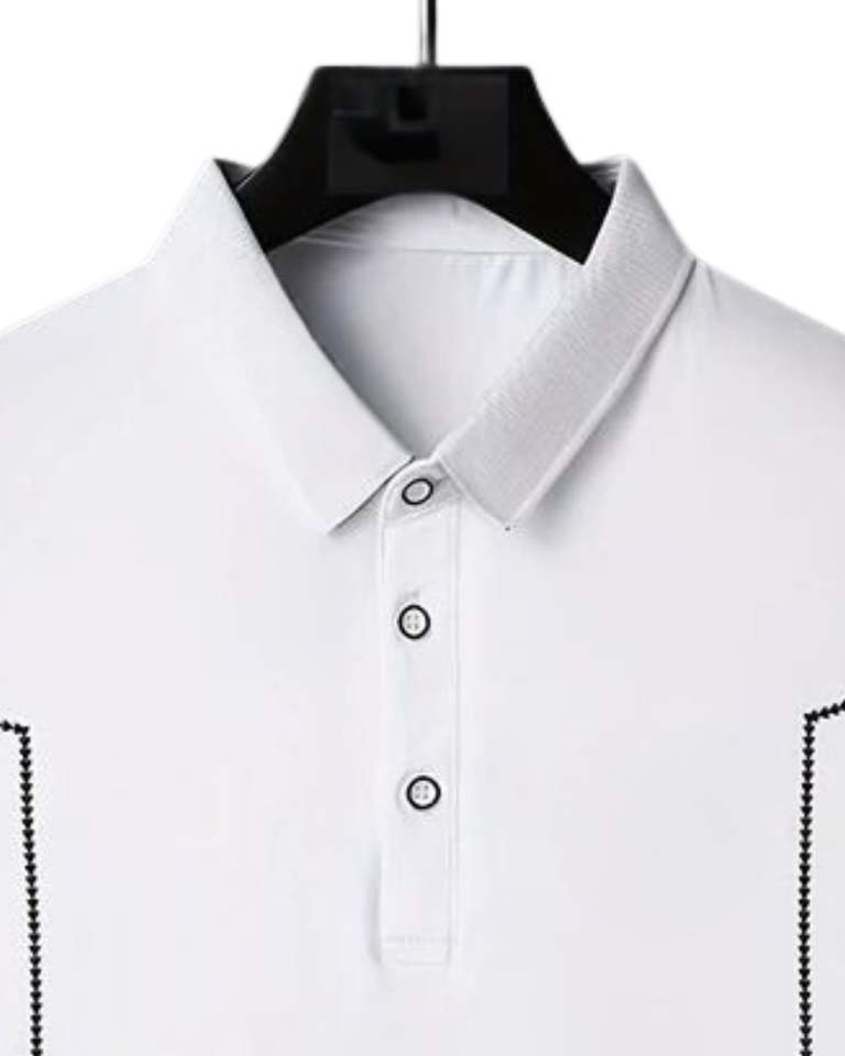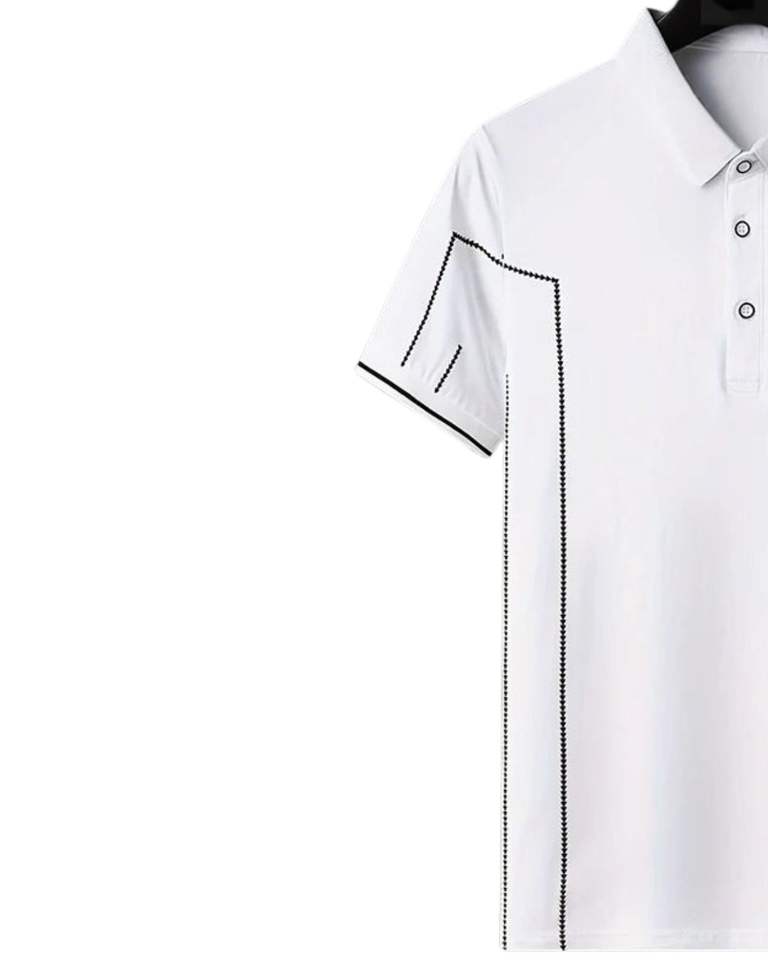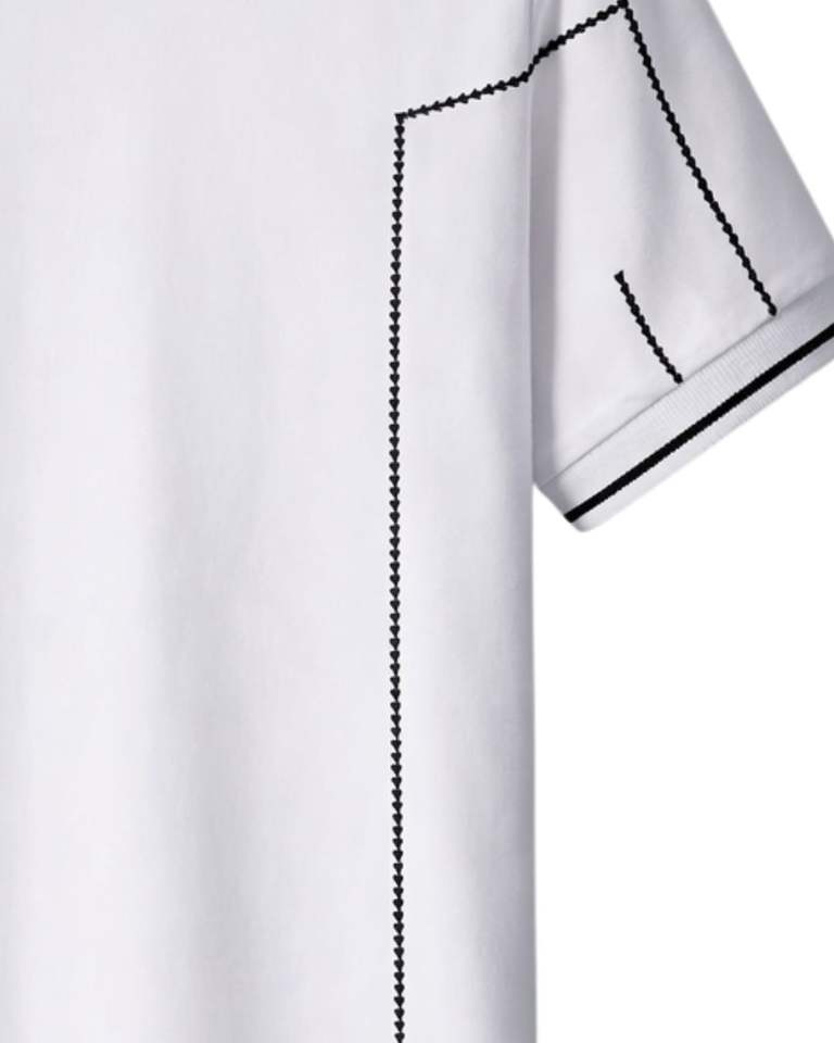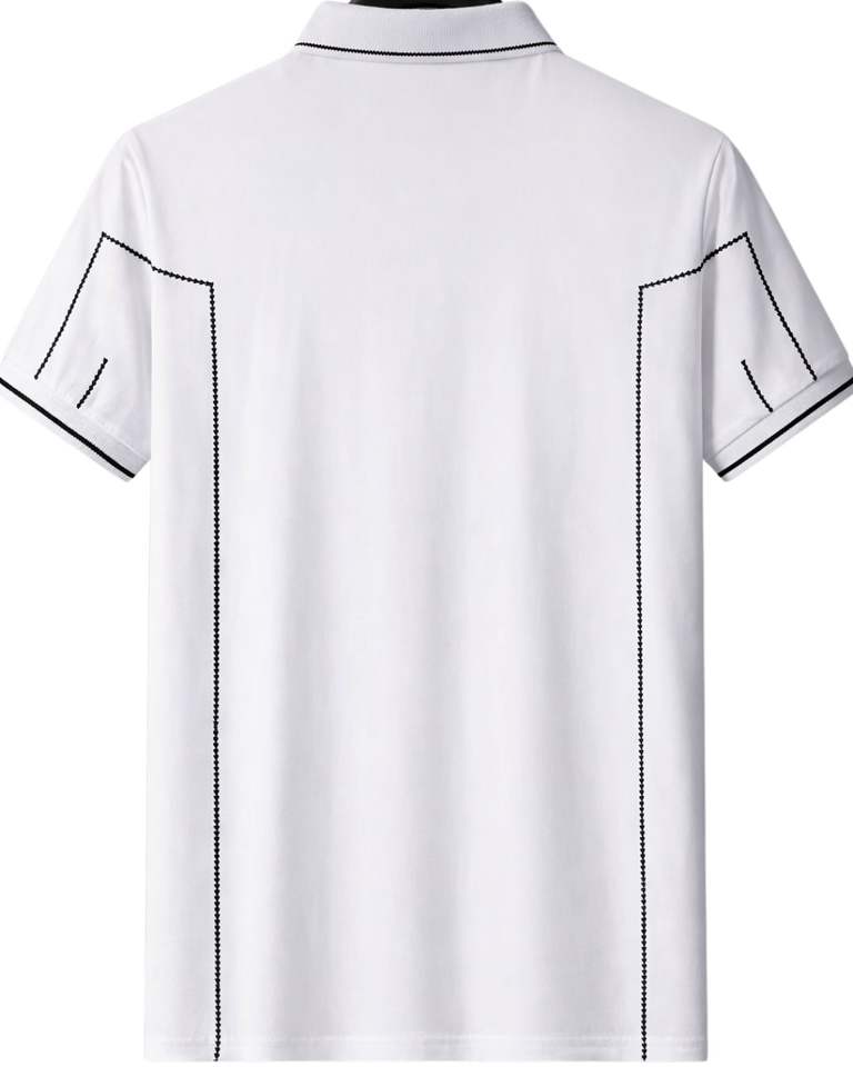 Men Solid Polo Shirt Short Sleeve Cotton Casual Golf T Shirt White With Black Contrast Stitching Summer Wear Mens Top Comfort