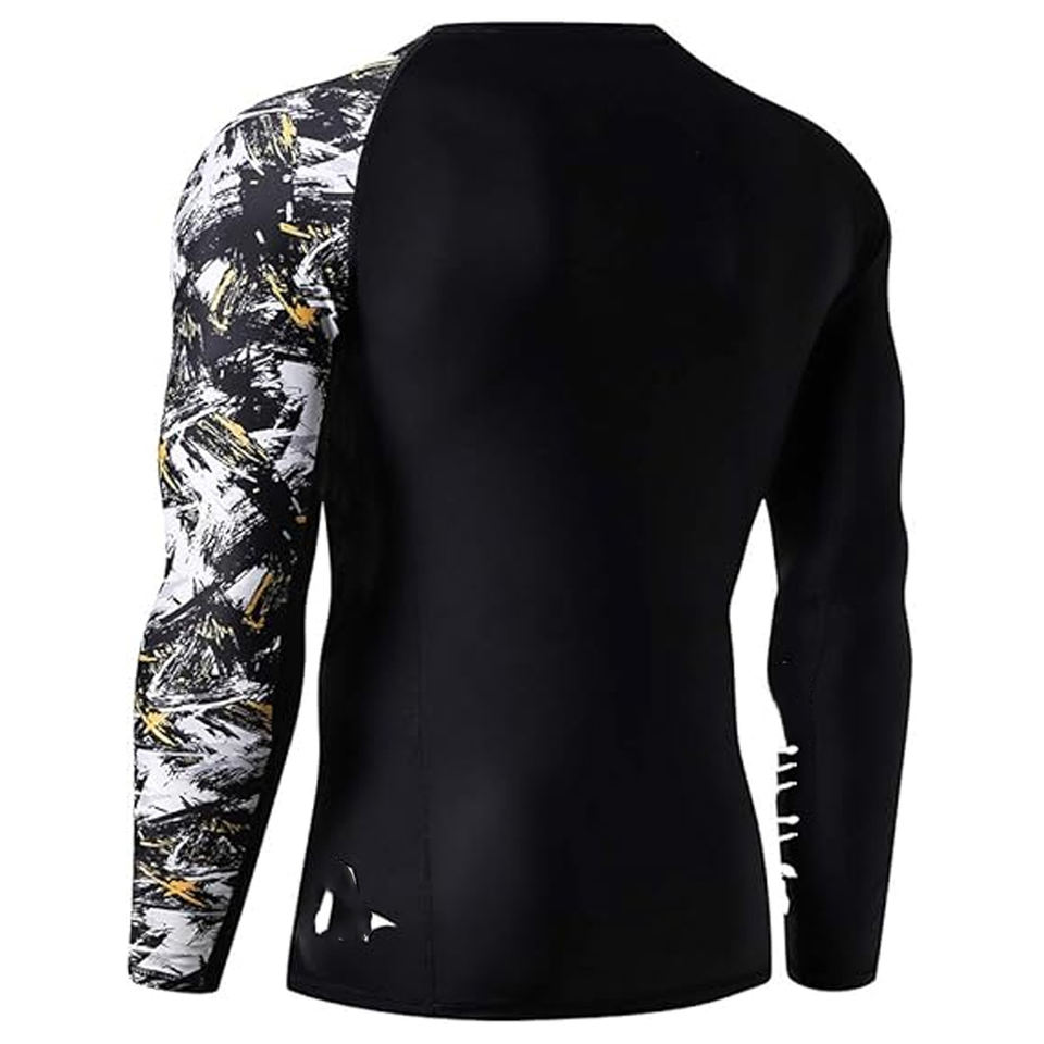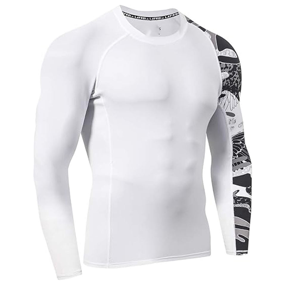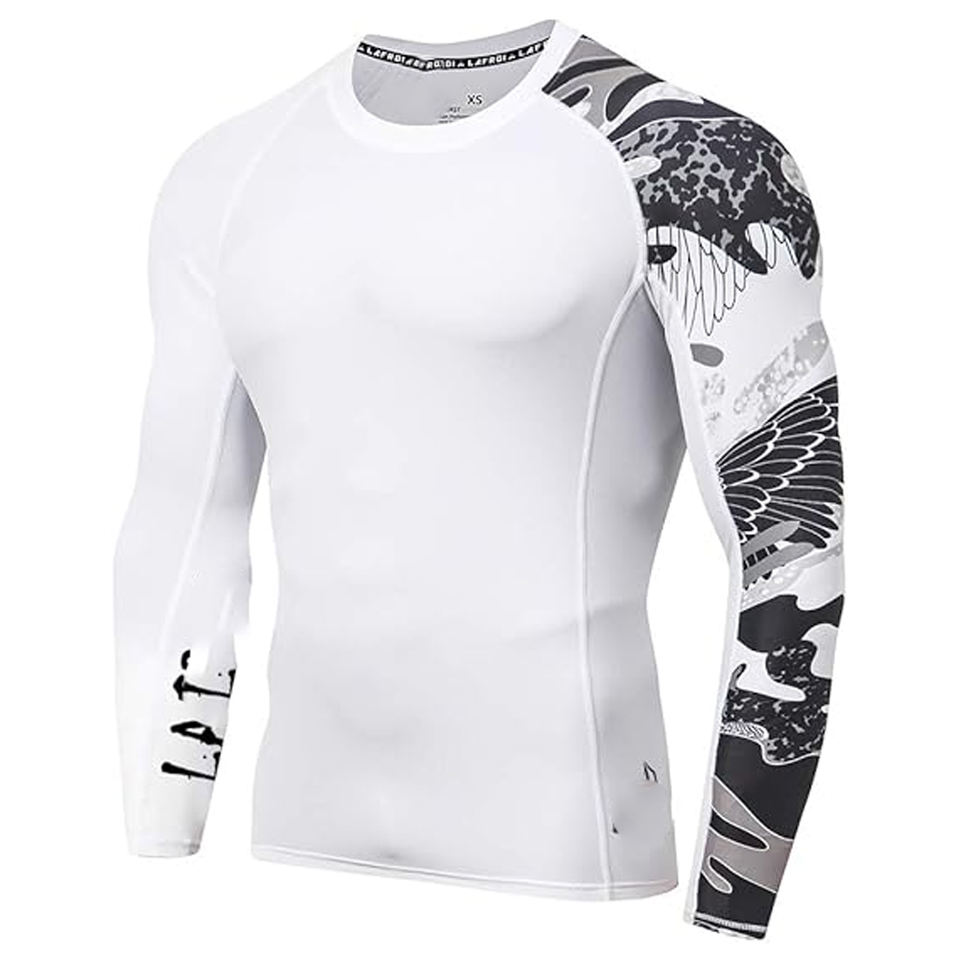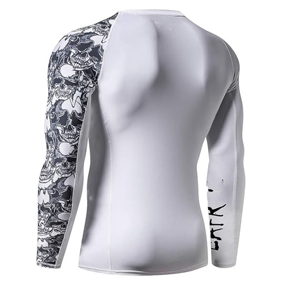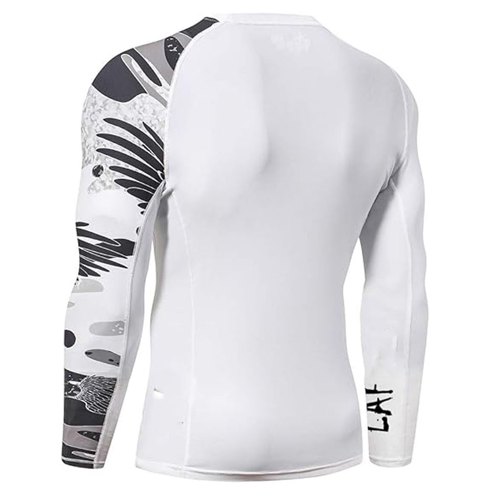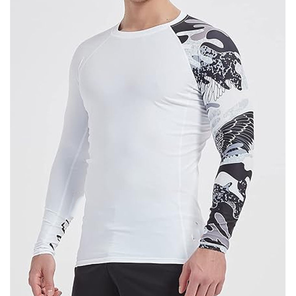 Men Sports Long Sleeve Rash Guard Compression Shirt Graphic Print UV Protection Quick Dry OEM Manufacturer