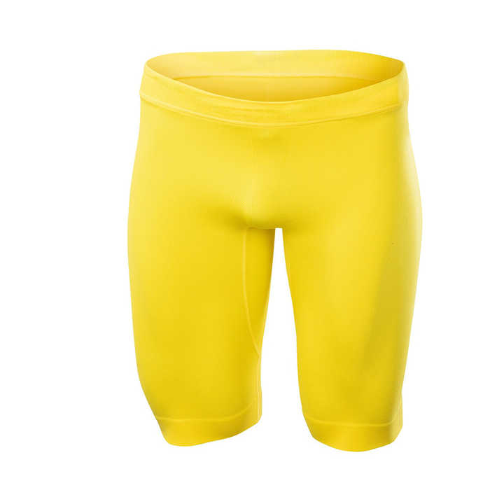 Men Sports Workout Fitness Compression Yellow Tights Base Layer Shorts