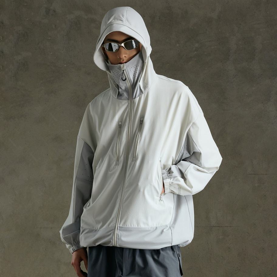 Men Spring Lightweight Quick Dry Anorak Zip up Safari Windbreaker Masked Outdoor Hiking Hooded Jackets Coats