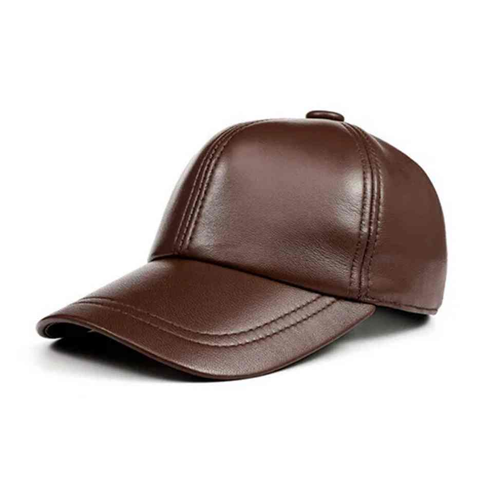 Men Spring Winter Genuine Leather Black Brown Flat Baseball Caps Male 54-62 cm Customized Size Snapback Golf Hat