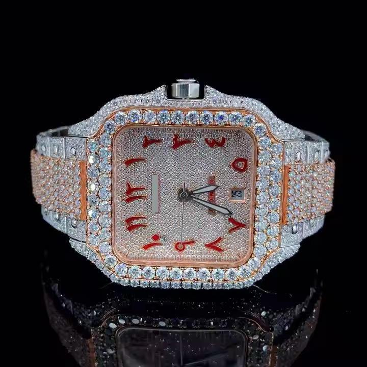 Men Stainless Steel Band Quartz Watch with VVS Moissanite Diamond Luxury Waterproof Fashion Wristwatch for Wholesale