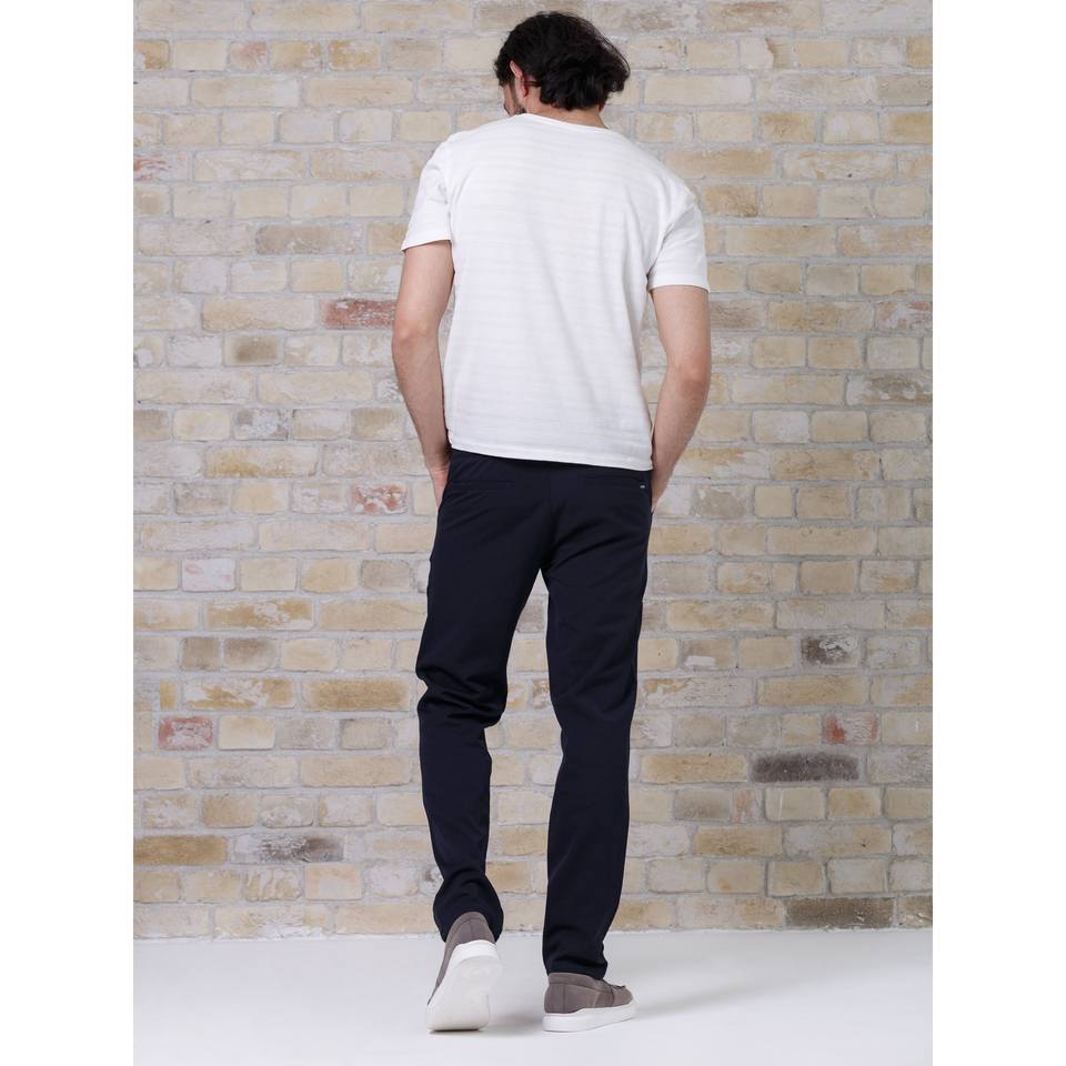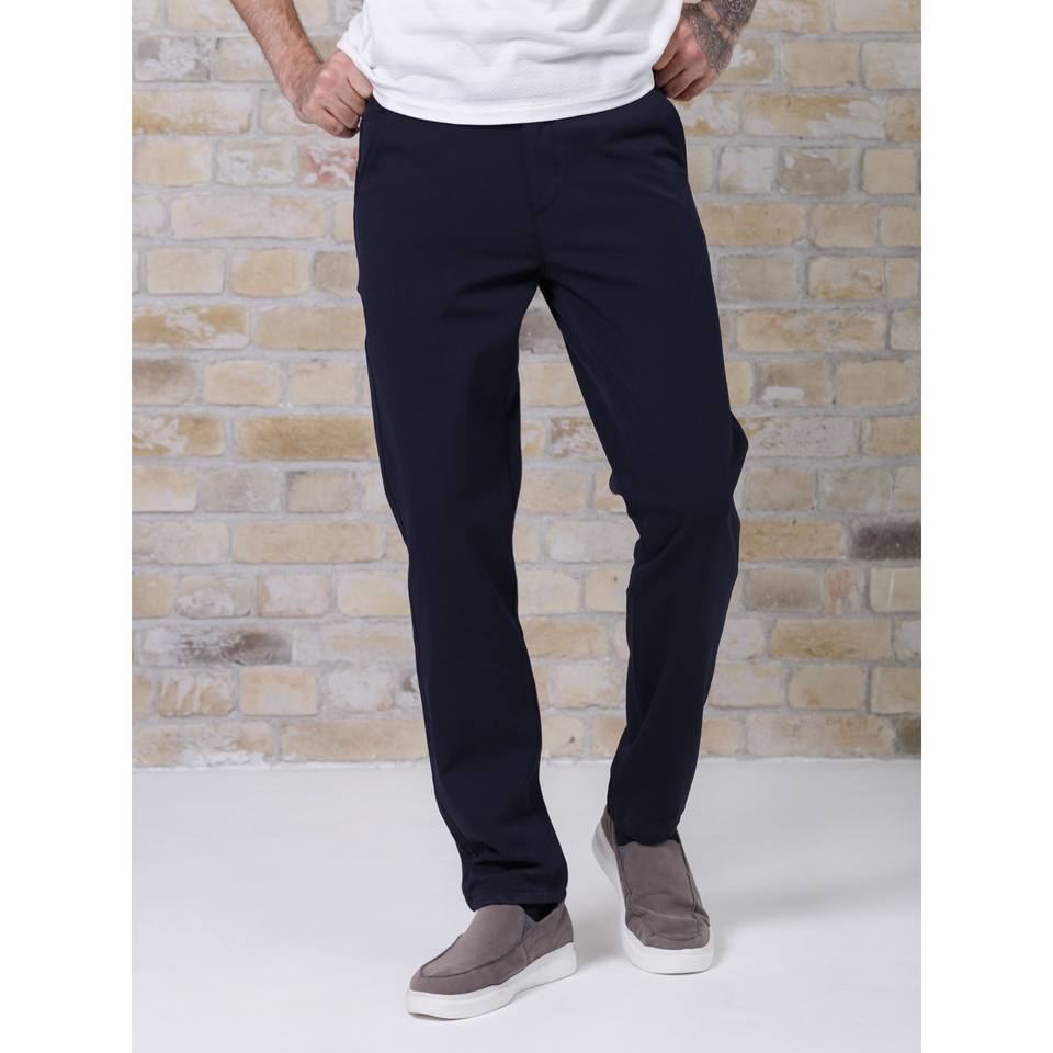 Men Straight Leg Chino Pants Dark Blue Casual Elastic Waist Fall Winter Wear