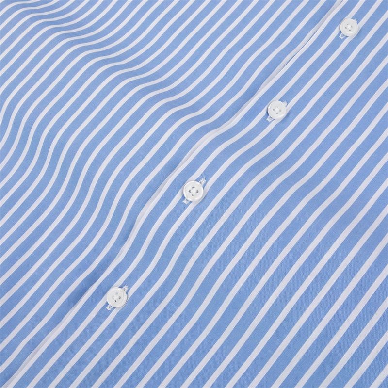 Men Striped Short Sleeve Button-Up Tshirt Turn-Down Collar Business Casual Blue Knitted 100% Cotton Anti-Wrinkle for Office