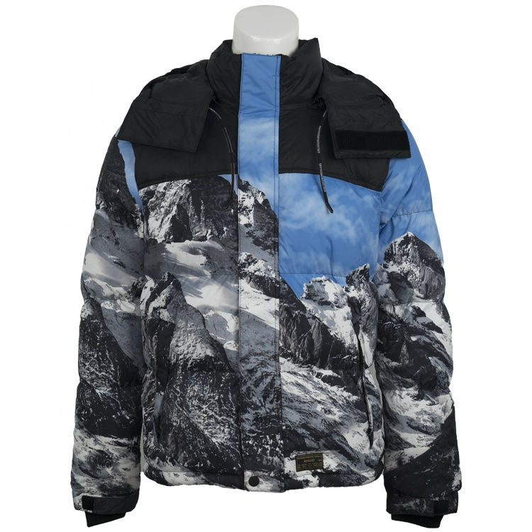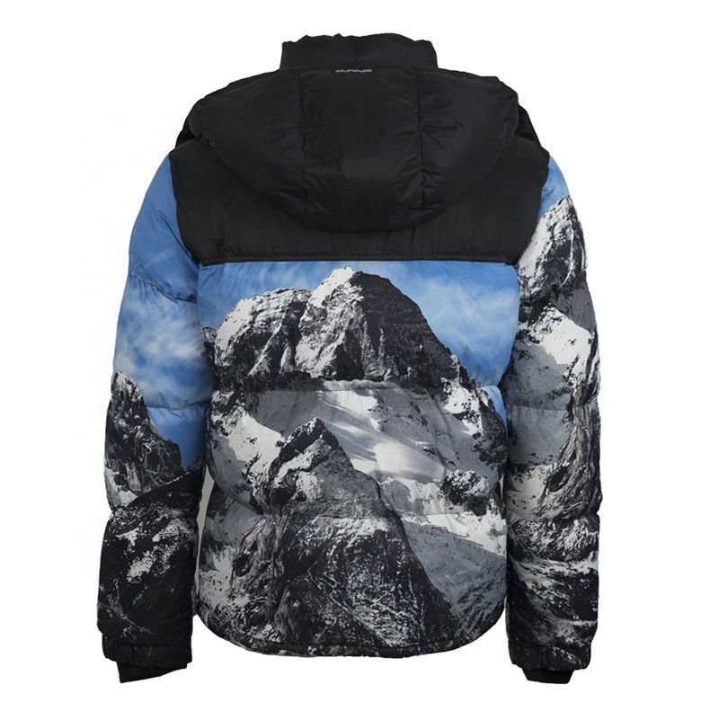 Men Stylish Sublimation Casual Breathable Hooded Zip Long Sleeve Warm Canvas Winter Puffer Jacket