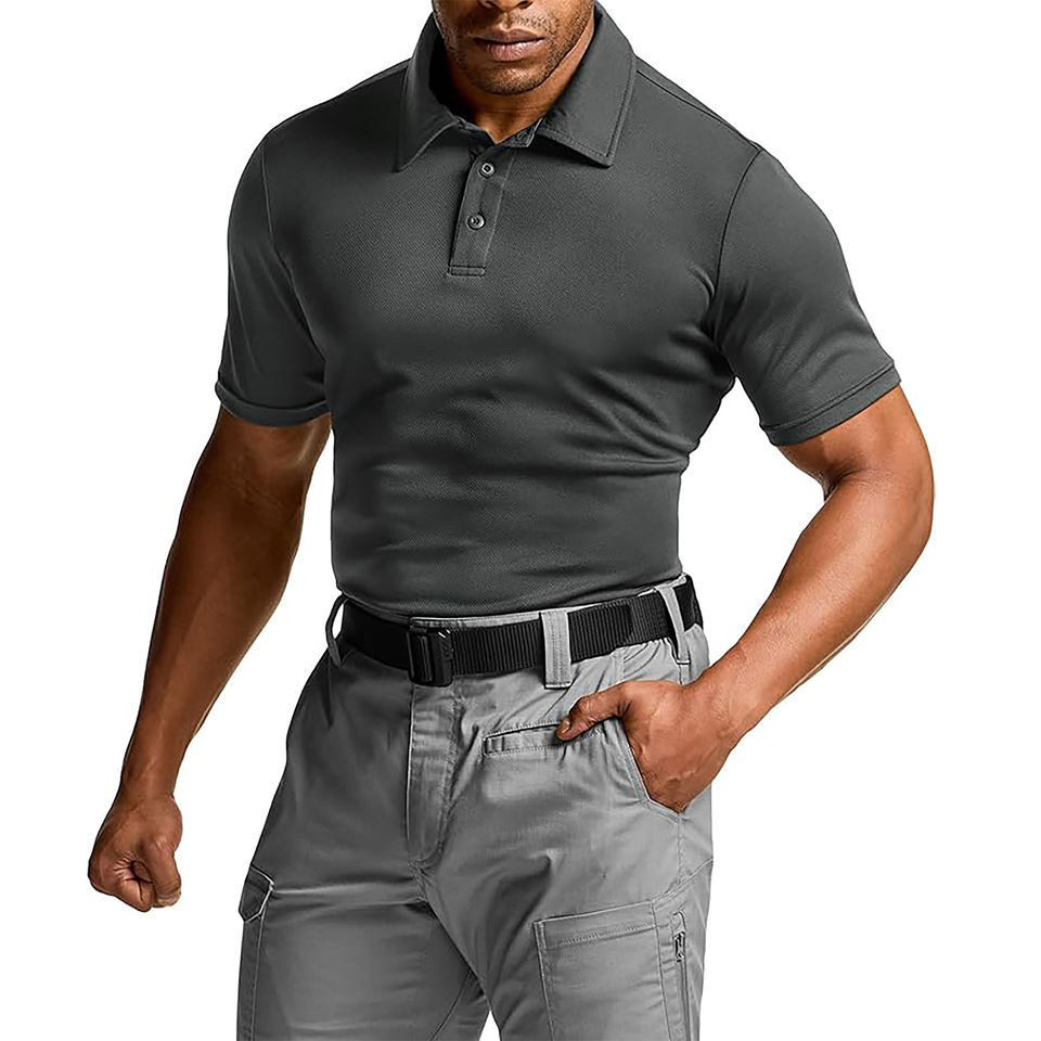 Men Tactical Polo Shirt Short Sleeve Golf Performance Top Lightweight Dry Fit UPF 50+ Pique