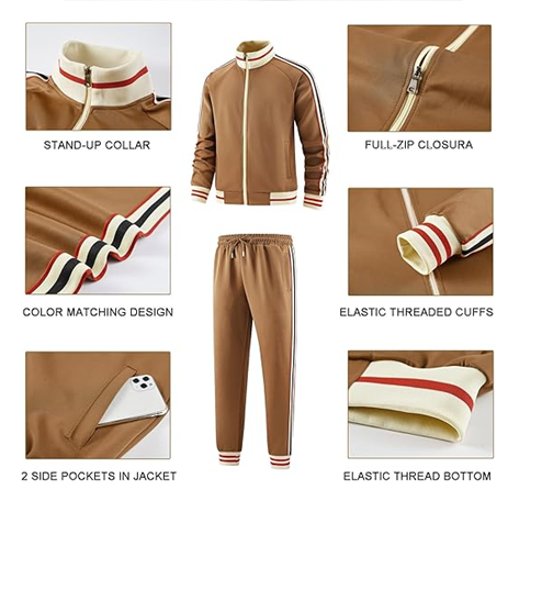 Men Track Suits Sets Long Sleeve Full-zip Sweat suit Active Jackets and Pants ,Full Sleeves, Self Cuff Styled