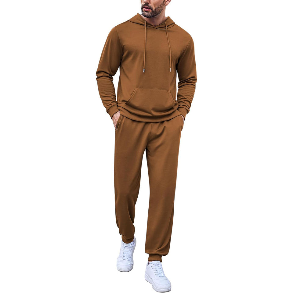 Men Tracksuit 450GSM French Terry Fabric Custom Pullover Hoodie Jogger Set Embroidered Logo Plain Black Casual Wear