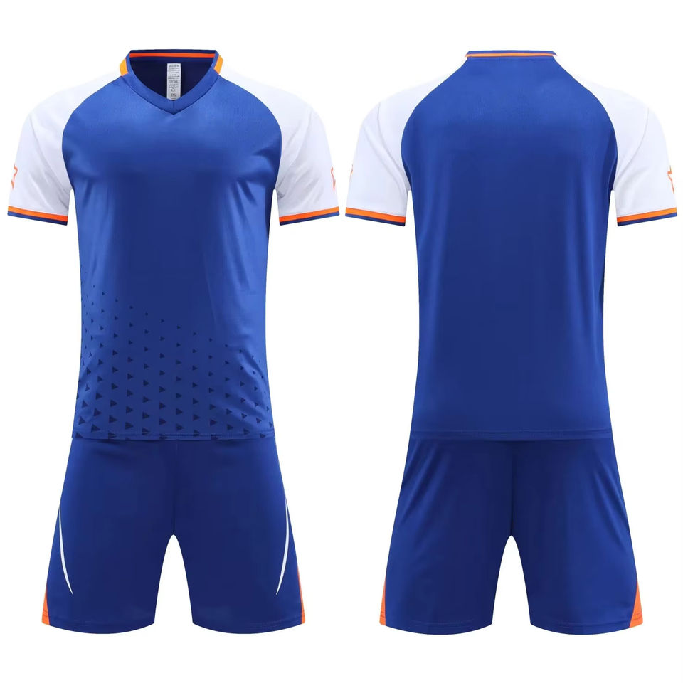 Men Training Suit Custom Design Heat-Transfer Printed 100% Polyester Anti-Bacterial Quick Dry V-neck Football Shirt Soccer