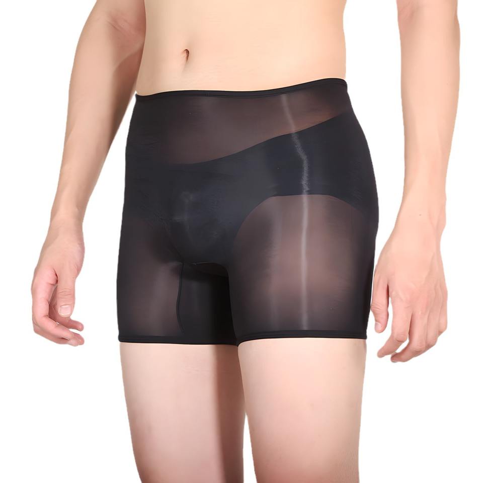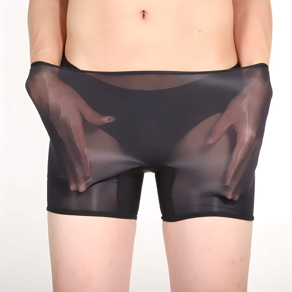 Men Transparent Boxer Briefs Mid-Rise Solid Color Polyester Quick-Drying Breathable Stealthy Bullet Separation Underwear
