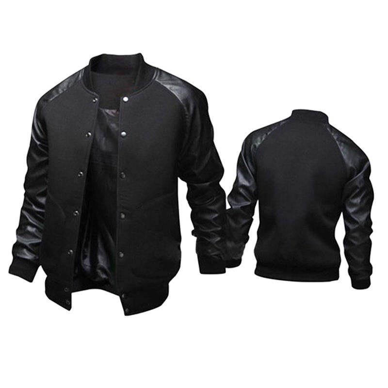 Men Varsity Baseball Jacket Black White Bomber Letterman Coat Custom Logo OEM ODM Streetwear Outerwear Wholesale Factory Supply