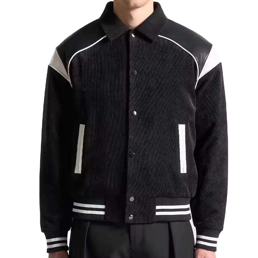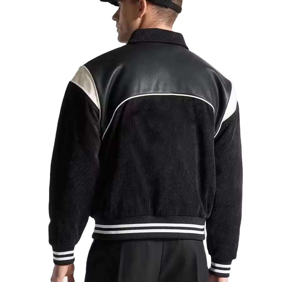 Men Varsity Jacket Sheep Fur Trim Leather Sleeves Fleece Lining Eco-Friendly Knitted Fabric Single Button Breathable Jacket