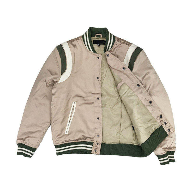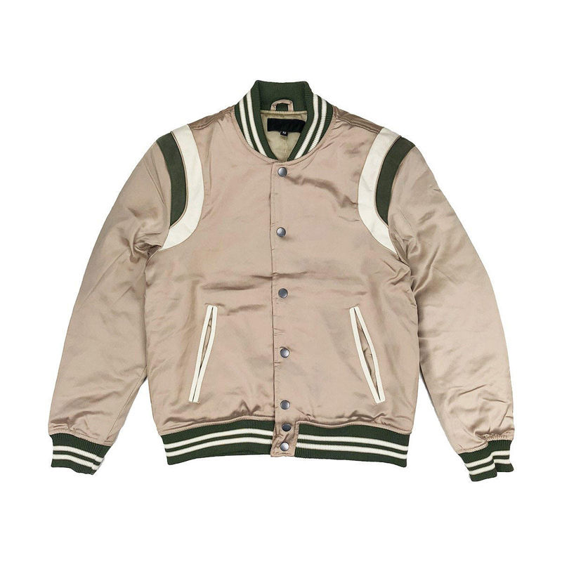 Men Versity Jacket with Stand Collar and Front Logo 100% Silk Eco-Friendly Winter Outdoor Casual Wear