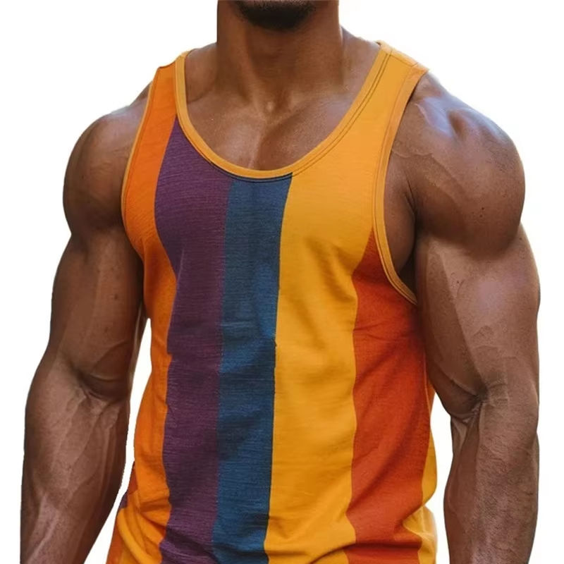 Men Vintage Stripe 3D Printed Tank Tops Fashion Summer Sleeveless Casual Sports Vest Loose Quick Dry Breathable Tees Clothes
