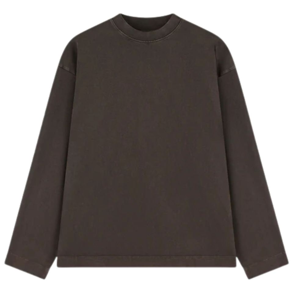 Men Washed Brown Long Sleeve T Shirt Crew Neck Cotton Casual Streetwear Fashion Top Soft Vintage Look
