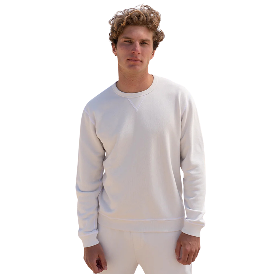 Men White French Terry Sweatshirt 100% Luxury Organic Cotton Pre Shrunk GOTS Certified Premium Classic Fit Pullover Sweater