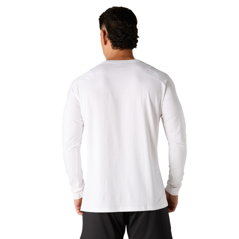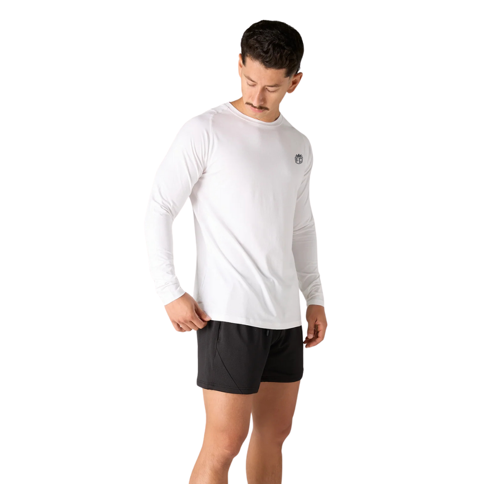 Men White Long Sleeve Performance T Shirt Moisture Wicking Lightweight Athletic Top for Workout Gym Wear