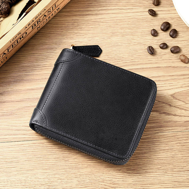 Product name:Men's Genuine Leather Zipper Bi-Fold Wallet