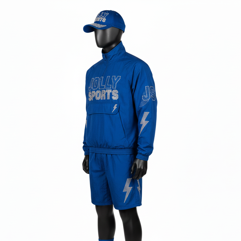 Men Windbreaker Shorts Set Premium Nylon Polyester Fabric Breathable Blue Reflective Logo Windbreaker Shorts Set for Men