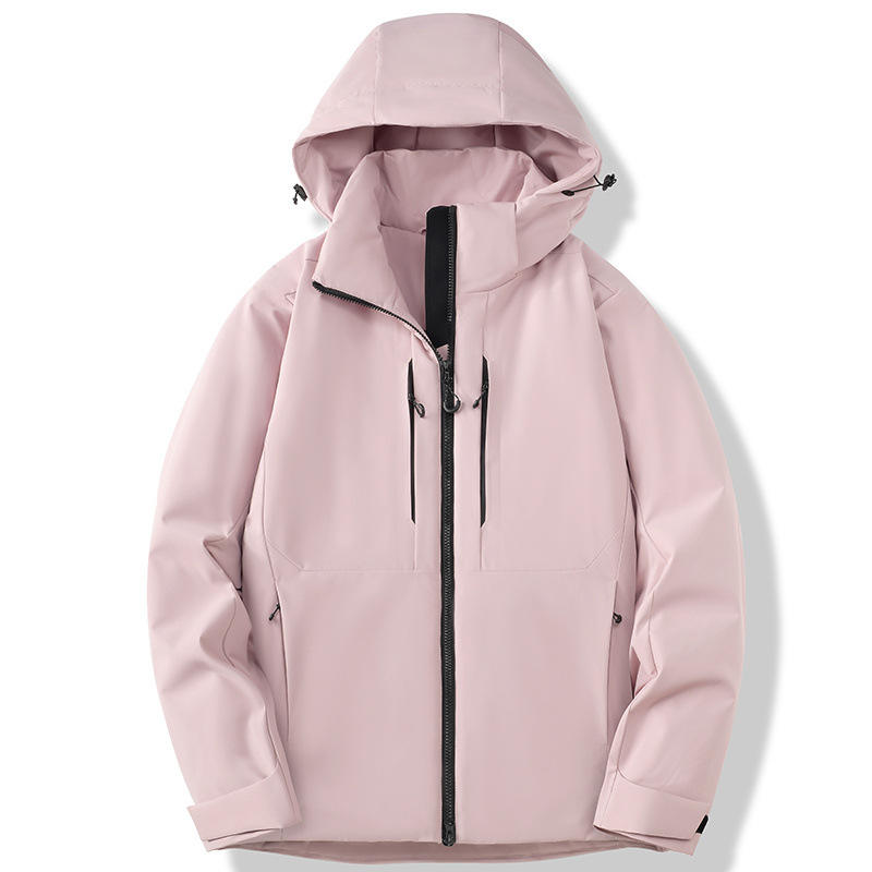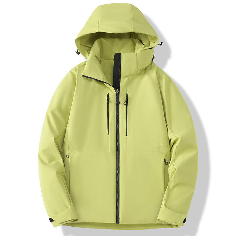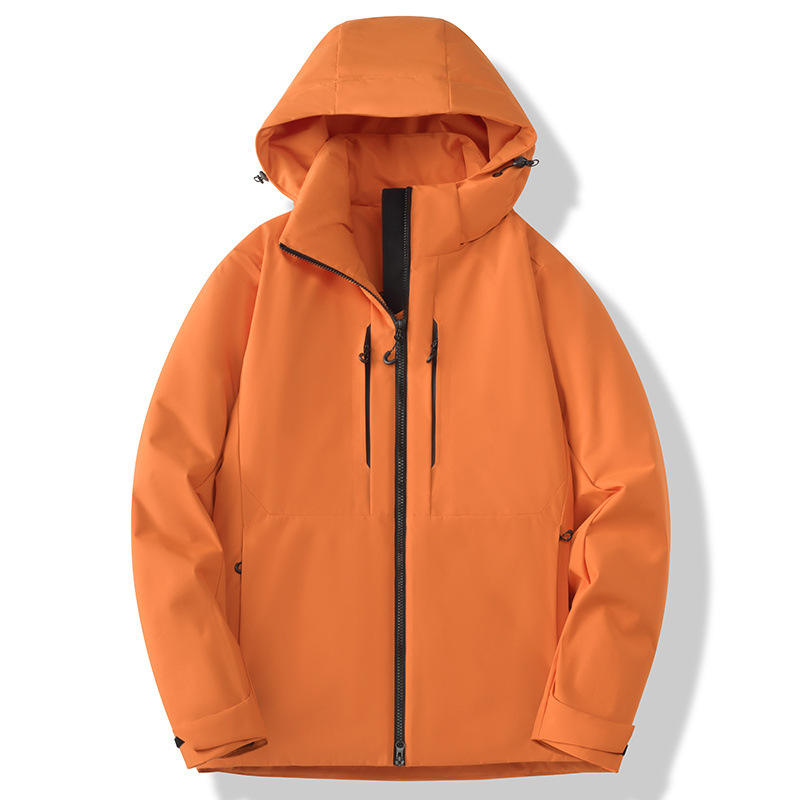 Men Windproof Jacket With Inner Liner Winter Solid Color Contrast Hooded Workwear