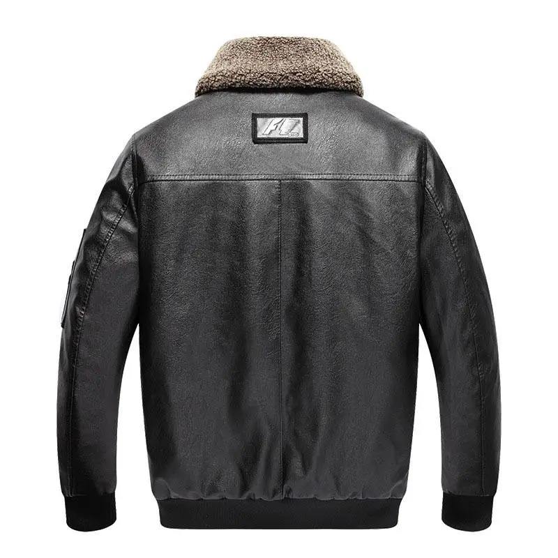 Men Winter Genuine Leather Canvas Bomber Jacket Fleece Lining Waterproof Windproof Motorcycle Vintage Outwear