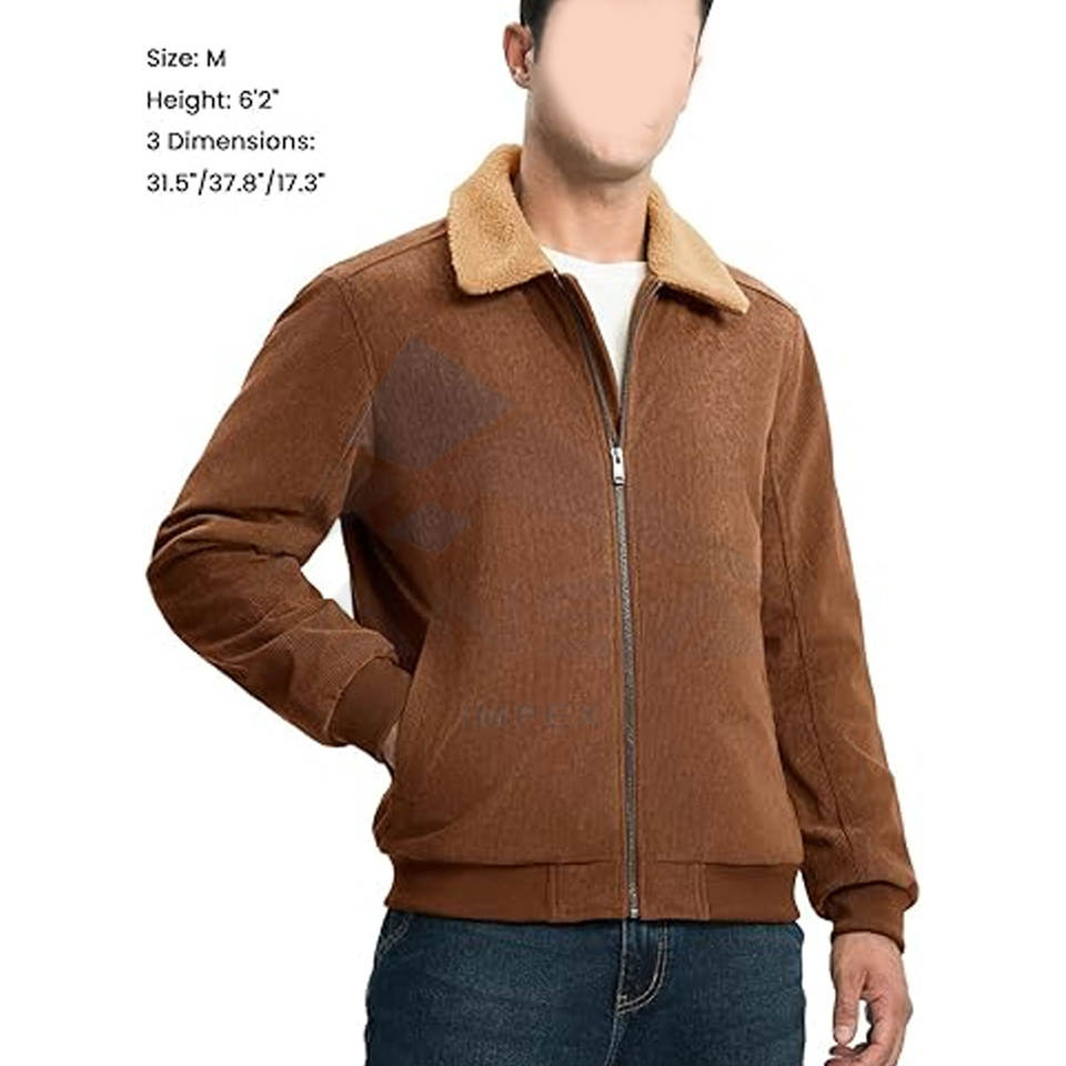 Men Winter Jacket Sherpa Lined Corduroy Fleece Jacket Thick Warm Turn-Down Collar Full Zip Casual Outdoor Coat for Cold Weather