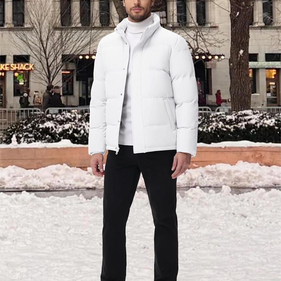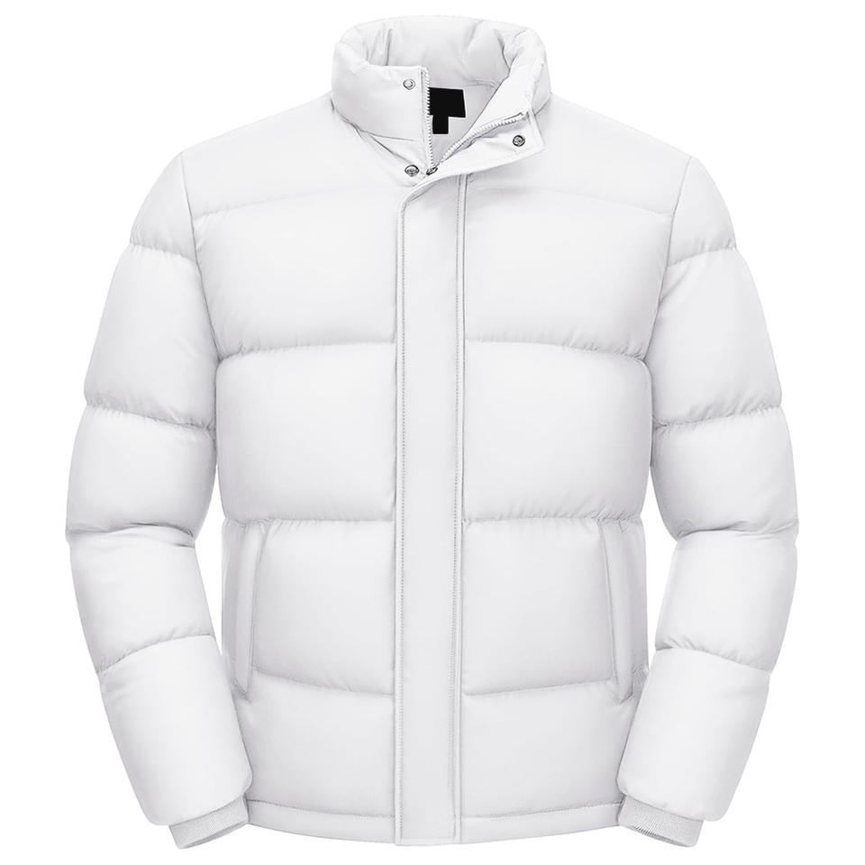 Men Winter Puffer Jacket With Custom Logo Thick Padding Durable Stitching Secure Zipper And Professional Apparel Manufacturing