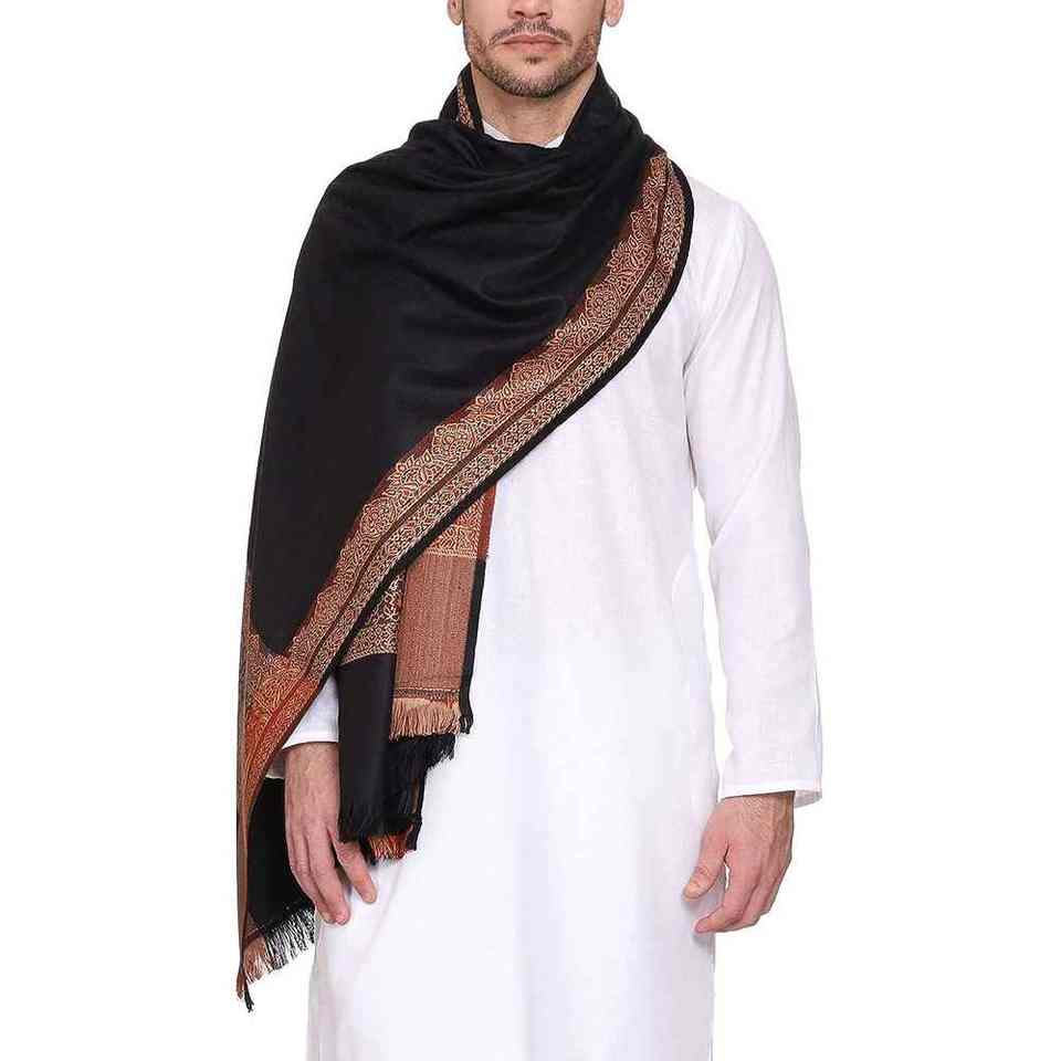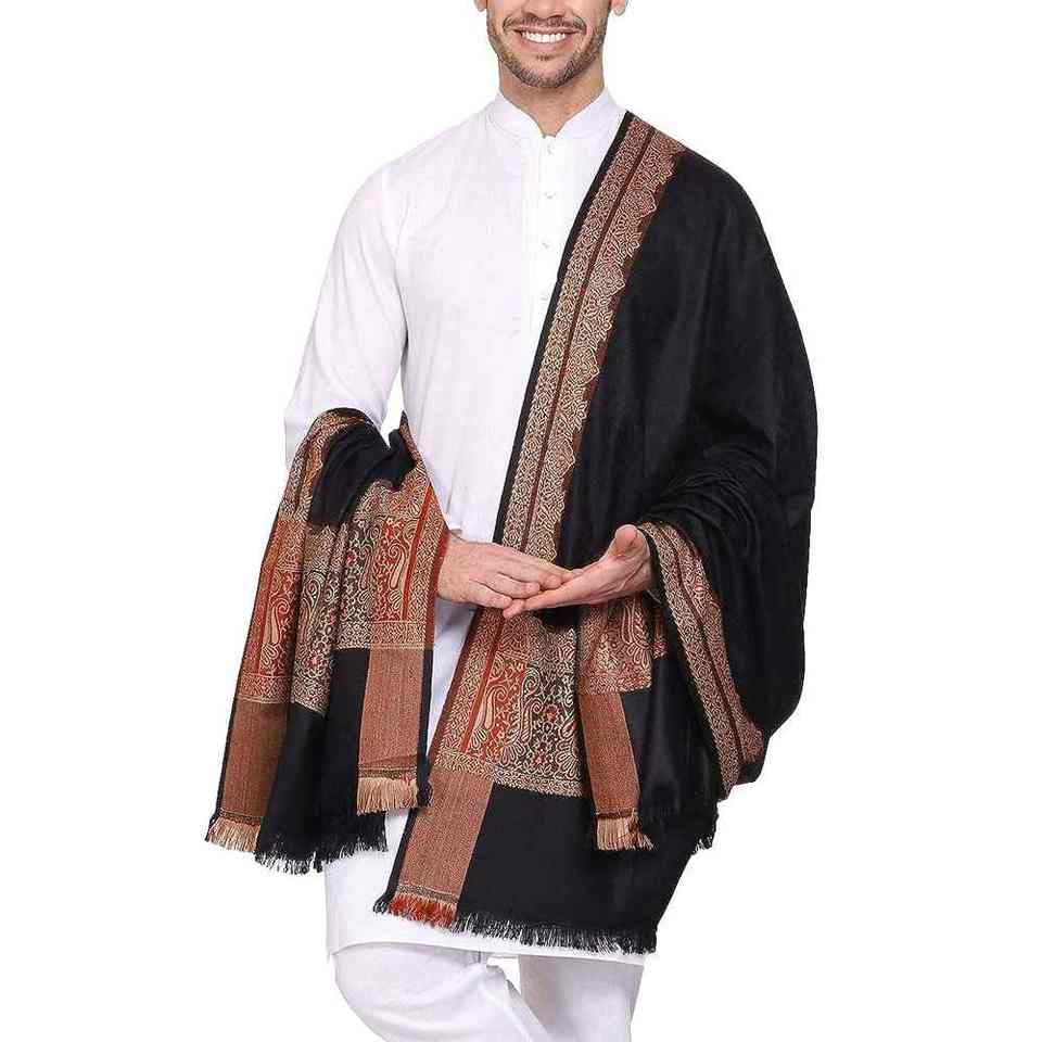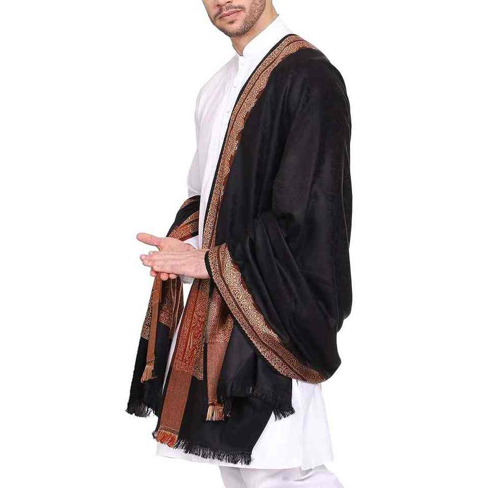 Men Winter Wool Shawl Soft Warm Breathable Traditional Premium Solid Wrap 300g