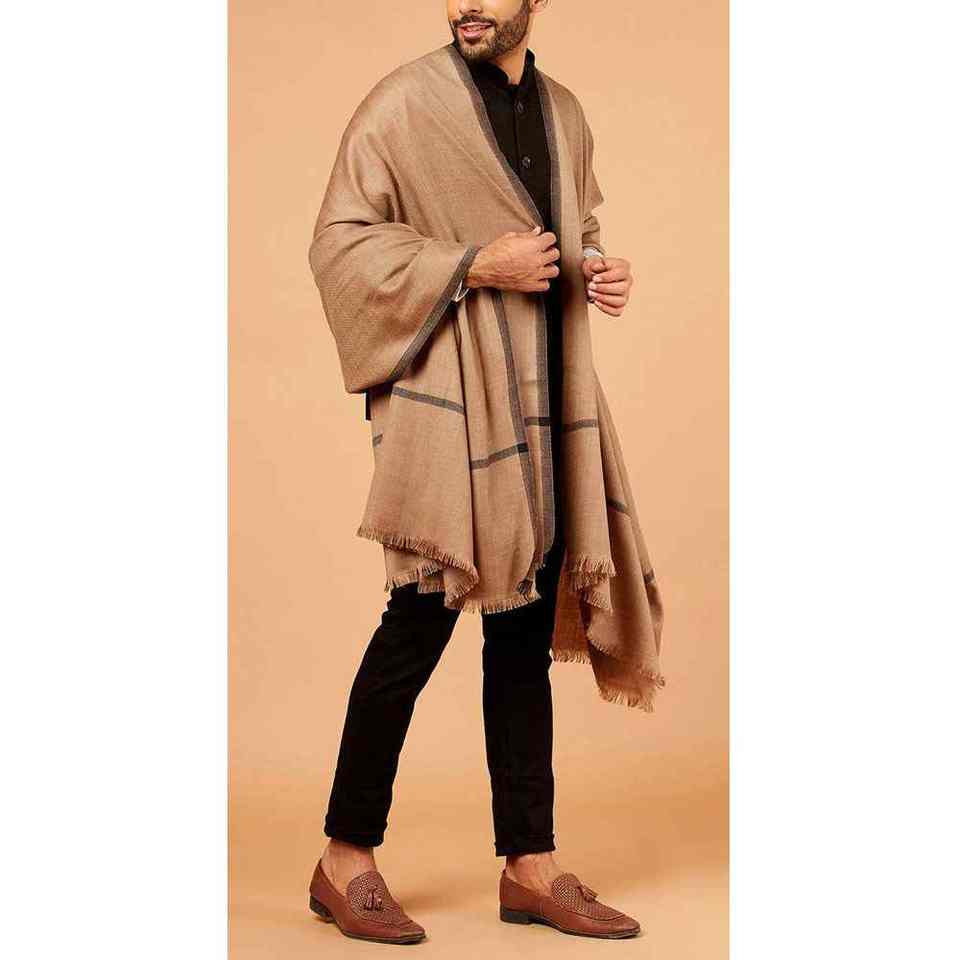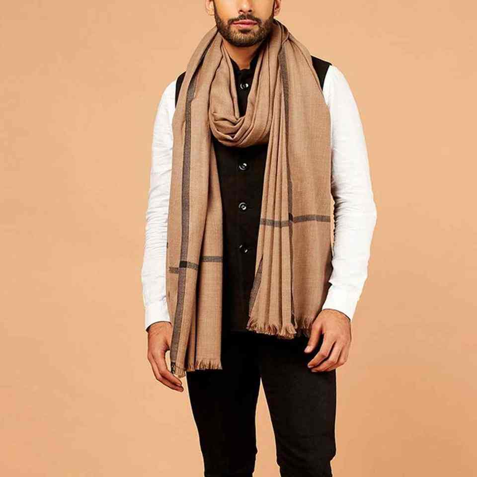 Men Winter Wool Shawl Soft Warm Breathable 300g Traditional Elegant Solid Color Wrap Middle Eastern